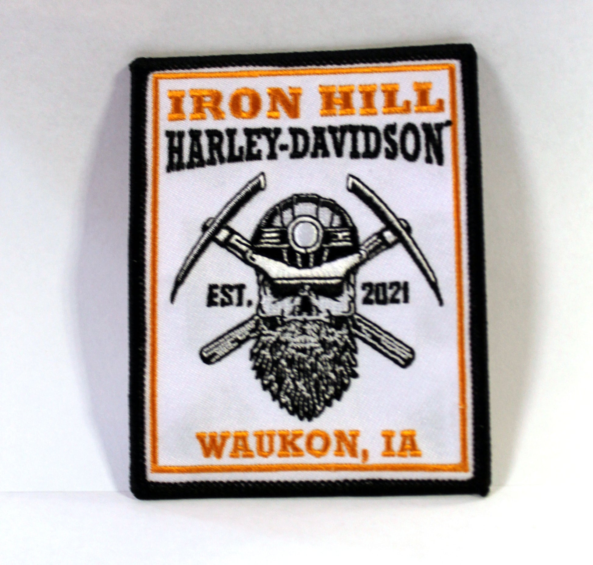Jacket or vest patch with the classic Iron Hill Harley-Davidson logo.